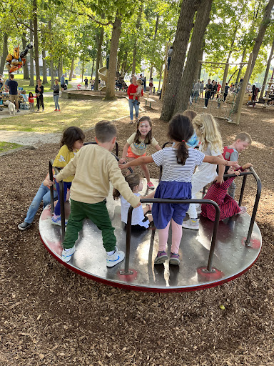 Read moreGreta park! BUT... don't let 2-6 age children try the playset with the rock climber, it's about 15 feet off the ground and they get stuck (and terrified) up there, and Moms and Dads struggle to find a feasible way to help their little ones down. I've seen it easily ten times. The public restrooms really aren't too bad. On occasion we have barbecued here, but be prepared to haul your goods from a little ways. This park has wood chips, not good for flip flops or sandals. Be aware, the road is close, if you have a runner, this is a...