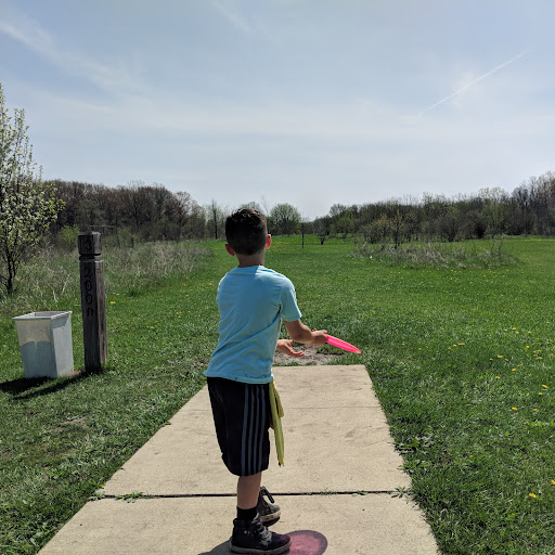 Just follow the beaten path! It's pretty easy to figure out, also if you need a reference there is a sign located between hole 2 and 3 (at least there is a sign :) ) the pro pads make it worth trying and still average only 2 to 3 hundred feet, really. A nice course to practice in those awkward few months of beginning this sport because it have a short pad position also, then you have the few joint pads where you can clearly see a red and white stripe on the pad markers, along with the feet! Careful for ticks and other pests around the lake, dog friendly, pick up your trash and dispose of them at the red holes (sucks that there aren't many trash cans at the white pad positions (hint, hint)) please! I posted a picture of the map for you plan ahead-ers......