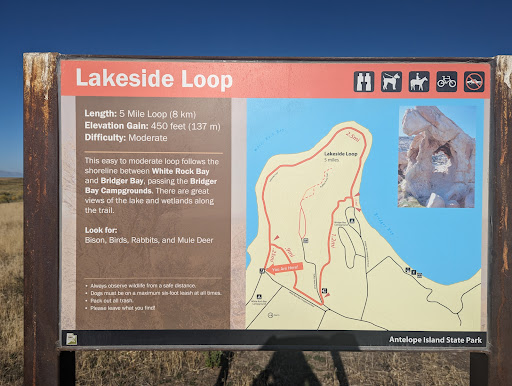 Read moreThis is a very nice trail and fairly easy to hike for just about anyone. The trail goes around the Northwest side of Antelope Island. This trail offers sweeping views of the Great Salt Lake. You get to see the lake in a different way and see how broad and vast the lake really is. This can be a very hot hike during the summer so bring plenty of water. The hike is a round trip hike going to Bridger Bay Campground and then cutting over a little South of Buffalo point. But, to me, just turn around at the campground and come back the same way you went to see the beauty of the lake views (and spare yourself the up and down to get over Buffalo point. Look out for the occasional Buffalo. Give them...