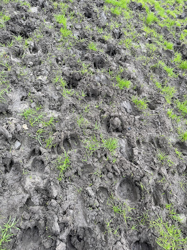 Not only was the presence of the cows themselves disruptive, but they had torn up the trails to the point that they were nearly impassible, and if I weren't already 4+ miles into my hike, I would have turned around to avoid them. Between trying not to roll my ankle in their hoof prints, and the futility of avoiding stepping in cow poop, it was a long way from being a restful communion with nature and appreciation of the park. (Attached pictures from different sections of trail, as well as a warning on what your shoes may look like after your visit.)