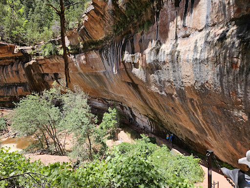Zion Lodge, Shuttle Stop Five, is the access point for the Lower Emerald Pool Trail. It was just over 1-mile in length, but what makes these walks a bit more difficult is the change in elevation. All of them go up hill. This is described as ‘easy’ and while it was not technical and is suited to wheelchairs and strollers, they would need assistance. The Lower Trail was shady and pleasant and follows the canyon bottom to Lower Emerald Pool, which is located at the base of a cliff. Two small streams spread across the cliff face and trickle into the pools. The trail leads behind the falling water. We found the water trickle to be just that. It did wet the trail, but not flood it. We did not go beyond this point, and were a bit disappointed in the slimy green algae ridden water collected in the lowest area of the bottom. The trail to the higher Emerald Pool becomes more...