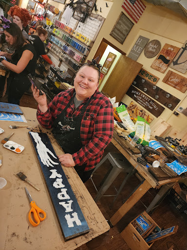Read moreLong time admirer of this place, first time visitor! My crafty bunch (sister and mom) went for a Hocus Pocus themed night and loved it. Wine AND crafting? Yes please. Staff was very knowledgeable, friendly and have an amazing routine to handle all skill levels. For this Halloween theme, there was trivia, music, the movie playing and you got to take home some home decor of your choice that YOU made. Would recommend.... (and go back as I have my eye on a new sign for my kitchen....