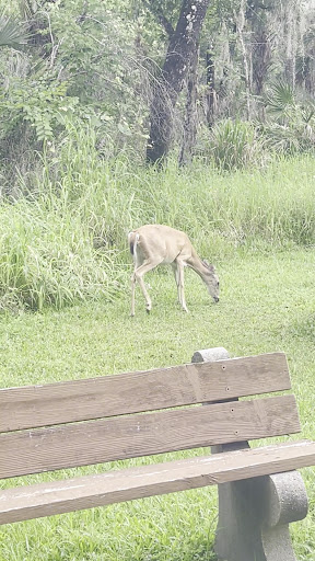 As you walk in, there are restrooms, some covered picnic areas, a big open field that would be good for ball, and an information board. You can pick up a paper map if you need one, and I placed it back when I was finished because they didn’t have many. You probably don’t need one though as these are easy trails and you can take a photo of the map at the entrance of the North trail. There are three trails, the North (partly paved), River, and South. The star of the show are the viewpoints along the Peace River, and the South has the longest and most interesting stretch of this. The trails are very basic and bland, to be honest. It’s a place where the general public can get exercise, jog, or dog walk and it’s fine for that. If you are adventurous and athletic, I would recommend exploring the woods off trail and/or going down to the river bank. The only major wildlife I saw was one deer. All in all, the park is ok. The old wooden bridge from the North to South trail is a...