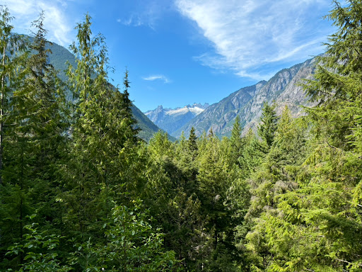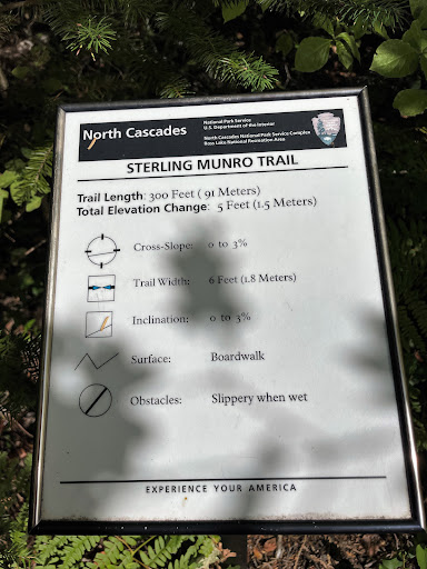 Short (300') out-and-back boardwalk trail behind the Visitor Center. Takes you to a gorgeous scenic overlook of the Picket Range. While it doesn't take long, and it isn't remotely strenuous, it is absolutely worth your time. Don't miss the spectacular picture-window type...