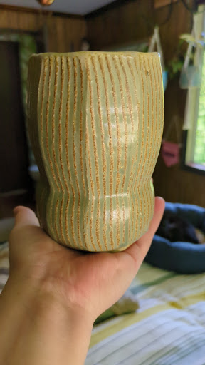 Andrew is an extremely talented, kind, thoughtful human that will do everything he can to create a piece that fits you as an individual, and he does so with his whole heart every step of the way. I especially love my bud vases that are perfect as decorative toothbrush holders as well as a perfect vase for any window ledge, table or desk space. You will not be disappointed no matter what you choose to purchase! (Glass vase pictured is not his, but the other two...