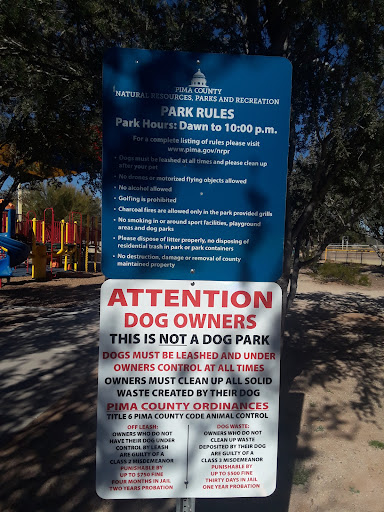 Exceptionally well maintained park. Shaded playground, picnic areas, basketball court, several fenced grassy baseball and soccer fields. Wonderful place to walk a dog with large trees providing shade around perimeter of fields. Our dog loves to romp in the grass and the fences could allow her to be off leash. I previously rated the park five stars but have changed it to 4. That is because the county now has posted signs threatening severe penalties for owners of dogs who are allowed to be off leash. That is very disappointing, no doubt a result of thoughtless people who do not pick up after their dogs or who allow potentially vicious dogs to be off leash. It is a shame that grassy areas totally fenced and unused during the vast majority of daily hours, cannot allow dog owners to close all gates and let them run freely in the grass. Our yard is Arizona landscape with rocks, as are most of my...