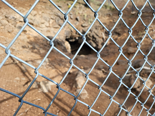 The hike itself was easy to moderate. The terrain was flat for the most part, however, there are some rocky sections and a couple of small streams to cross. The trail is well marked with a 3-4 inch sheet metal diamonds attached to the trees. You'll go by Scott's Reservoir and you may encouter guided horse rides, bicyclists, birds and other hikers with their dogs. According to my research, the cave was discovered in the early 1900's by shepherds. The cave is a lava tube that has 3 sections, which is fenced off for safety reasons, but is easily accessible by going under the gate. The site looks like a sink hole and the air coming out from under is 52° year round. It's a pleasant hike...