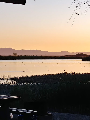 I only drove through and took a short walk but I'll share what I saw. It is $10 to get in, though if I'd gone on a weekday, I could have been given a 15 minute pass to check out the area. It is a clean campground, with areas for tents and some for RVs. There are ample restrooms, though some are small portable types that look like they'd be ovens on a hot day like today (105+). There are also cabins for rent, $70/night. They are small, but are air conditioned with window units. I only had a glimpse inside, but it looked nice. There is an RV dumping site and the RV spots have hookups for electricity and maybe water (not sure). We saw a hot tub, but it was closed probably due to the heat. There are also day use areas with only covered picnic tables and grill. All spots, even the cabins have both. Each type of area is separate from the others, though I did see some tent spots and RV spots in all overnight areas. There is a lot of shade in most areas from trees and the lake is lined in many areas with cattails. I saw 2 boat ramps. There was a sort of peninsula into the middle of the lake, really an island connected with a path. On one side of the island is a beach with a large swimming area marked with floats to keep boats away. Even with middle of the day heat there were a lot of campers, swimmers and fisherman. The fisherman were waiting for it to cool down some, but we saw a lot of fishing gear. It was a weekend, so it was more crowded than I expect a weekday to be. Even though I grew up in the area I didn't realize the lake was there and so close to town! My mother was an avid fisherman and if she had known it was there she would have gone often. It is the best kept secret of the area! If you are looking for a swim it looks great, but I expect fishing would only be good early in the morning. The water is just too warm. We saw a few ducks paddling around too so everyone was having a good time. The tables and camp areas have ample space between so you would not be bumping elbows with neighbors. There was also a pavilion with several picnic tables for large groups. There may have been showers as well, but we didn't confirm that. There were several rangers and camp hosts on hand, so swimmers had help nearby and the campground was well watched. If it weren't so hot and I were in better shape I'd be tempted to go there. Maybe once it cools down. 😉 So I recommend it highly for an outing of any kind. Have fun! Sorry, didn't think...