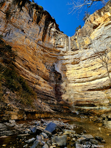 We hiked from the Compton trailhead, this is obviously a strenuous hike up. Bring lots of water, bring extra water if hiking in the heat. Extremely easy going down, it took us about an hour and a half to get to the main water fall. The hike back was around an hour and a half, plus we hiked to the Buffalo River (the area for canoes) which added an hour. Going down we could almost run most of it except for the large rocks and stairs. We went several days after a rainy week so some areas on the trail were very muddy and slippery, so hiking sticks super helped there. The waterfall itself was running okay, but no more than normal after decent rains. It was windy so the water fall was blowing around which was very cool to watch. It's an easy hike over to the Buffalo River as well, which is beautiful, and the canoe/kayak people have a very easy hike over to the waterfall. The hike out was very difficult, mostly because we were having to ration our water supplies. The trail out is very steep, and levels off towards the parking area. There were a few groups that had to stop and let us pass, and no one passed us. We are moderate hikers, with good hiking experience and hike often, but we are...