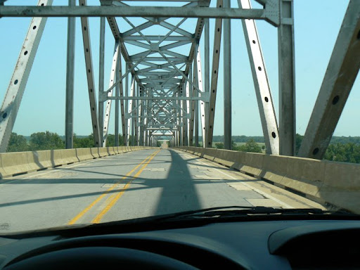 If you're looking for a frightening crossing, this is it. If you're looking for something a whole lot more peaceful, try either of the bridges in Memphis (upriver to the north) or the Greenville bridge (downriver to the south) or the Vicksburg bridge (even further downriver).