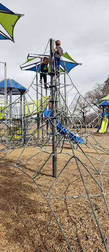 Awesome playground, one of my kids (almost 4- year olds) favorite! Big variety of things to do including a big climbing net, ladders, balance-testing tunnel, slides. The playground has sections for 2-5 YOs and 5-12 YO but my kids go on almost everything. It's a pretty big playground with benches nearby and a big open space, with a few picnic tables I believe. Everything seemed to be in good shape minus a little innocuous spray paint (someone solidly spray- painted over one of the bubble-windows on the main climbing structure so you can't see through it but it's not a bad word or picture or anything). I don't think there is a bathroom but the...