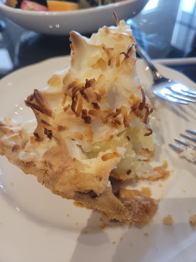However, my highlight was lunch at the attached tearoom with my wife. She enjoyed the cheese and green chili quiche, along with a salad topped with chicken. I had a club sandwich with a small cup of chicken tortilla soup. We finished our meal with a slide of coconut meringue pie - it was awfully good!! A nice touch would be some light music, perhaps, but that might not be to everyone's liking. There was a baby shower taking place on a rear room, so there appears to be at least one space that can be reserved for special events. The special of the day was pot roast with potatoes and carrots. I'm disappointed I didn't get that for my meal, although my sandwich was fine. I'll just...