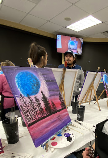 Read moreWe attended Saturday evening January 15, 2022. Our instructor was a Male this evening and I have to say in all of my times of doing painting with a twist this one was probably the most snarky but I really cannot blame him as there were a few people in the crowd this night over indulging with the “twist part of the evening“ and getting a little bit out of hand and loud. He actually did a pretty good job of handling all of the personalities and making sure everyone left with the painting they were happy with. Everyone had a good time. We attended as a family of four just to get out of the house and have some fun together and we easily accomplished that. I would give five stars but two things, one I could not find an apron to wear that was completely dry so I had to wear one that was damp and it was very cold this evening so that was a little uncomfortable. I appreciate that they are washing the aprons but having one that was damp was still not great. Number two, they don’t have hairdryers like the other locations for people to dry their paintings and I would have...