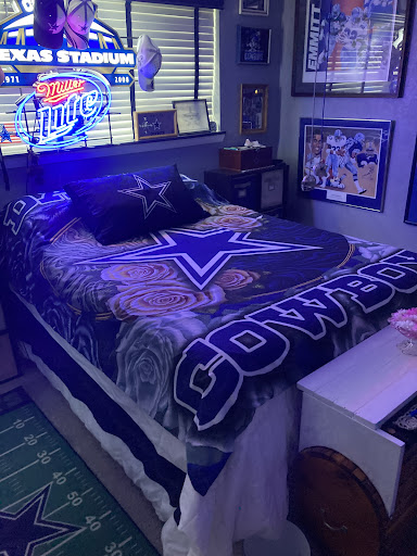 What a thrilling time for me, my son,daughter inlaw, and grandson to experience this amazing collection that Stoney and His Wonderful Wife (where is there any other woman to allow another man to do this ? Lol) to make a home a museum of Dallas Cowboys Collections. From the front yard to the back yard, from Hand painted Cowboys Field (on his knees) on his patio to the Bathroom Shower tiles making the field ! Cases upon cases, magazines to posters if it's made and has the Cowboys name on it, he has it !! Can Not wait to go back !! And all this was on our First Trip to a Home game of the Cowboys!