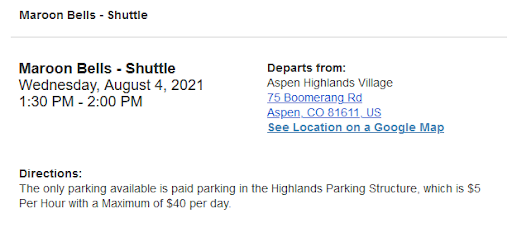 A couple of friends and I arrived in Aspen to trek Four Pass Loop. One of those friends stumbled on a website (AspenChamber.org) stating that a shuttle reservation was required to enter the park. We obviously didn't want to miss out on the trip we'd been planning for a year, so we booked the tickets in a panic. Then we got an email confirmation which stated the "only parking" was $40/day (which would be $160 for our trip), despite the website stating that parking would only be $10 total.