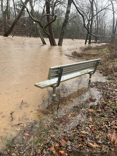 THE RIVER: People fish here, though I’m not sure what they catch. I mostly use the river for dog swimming purposes. It is also currently (as of April 2016) home to a mated pair of beavers, who are extremely active at dusk. A lighted path runs along the length of the river. This is also where Trail Creek feeds into the North Oconee.