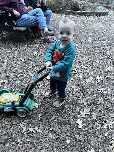 In Christmas Eve my children and my grandchildren and my husband and I all walked to Fox’s BBQ, and on the way home we stopped at Mulberry Fields. Cool place, mostly a community garden, and my grand-babies really enjoyed seeing the chickens and goats. There were a couple of things to swing on, and my grandson found a toy lawnmower and was in hog heaven! Really cute little Hobbit houses for little ones to play in, but they were pretty dirty inside with tree debris. It’s probably very nice in the summer when people collect there to...