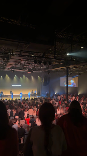 the 411: Non-denominational, modern worship style (live band and at times loud). The culture is different, diverse and all stages of life: student, young professionals, couples, families, mid-life, retirees. The gathering is like going to a Passion conference. There is no "paper program." Yes, the auditorium is huge but once you get to know people after a month or so the space seems more familiar. Never been? Give yourself 15-20 minutes prior to gathering time to park, find your way around and get the best seats. Recommend sitting in the middle and back if you have sensitive hearing.