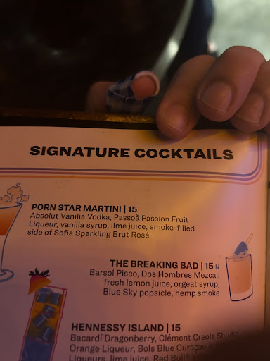 Extremely disappointed. Maybe itās our fault for having such high expectations. We had been so looking forward to coming here for a little over 2 weeks and it was beyond horrible. Upon arrival we were starving, nobody sat us. Period. (We had to walk to velvet taco after a certain point but weāll just stick to this one experience of many last night). We approached the down stairs bar and asked if we could order food here and the bartender very rudely and nonchalantly said, ānah, gotta be sitting hereāā¦. We looked back at the table 3 steps away from the corner of the bar and back at her and she just stared⦠SO, we moved past it and ordered the drinks we had been excited to tryā¦.. I ordered the āBreaking badā and my girlfriend got the āpornstarāā¦.. Letās start here⦠As described in the picture below, both are supposed to contain āsmoke/hemp smokeā to which neither did, the breaking bad was to be accompanied with a blue popsicle, to which it wasnāt nor was it presented in the mini chest as we had seen on some other reviews and all over IG. Being a bartender myself for 10+ years, I can without question say, my āBreaking Badā was the worst tasting cocktail Iāve ever had. It seems it was made with straight bitters and the alcohol was possibly forgotten. It was so disgusting that I tried to get it down with two big gulps but gagged and had to push the drink away. We were needless to say very disappointedā¦. This bartender needs to be let go btw. She clearly was hired for aesthetics and could have given two shits about what she was doing and who she was servicingā¦.. We press on. The 2 gentleman at the bar upstairs were very welcoming And did a decent job on the basic drinks we ordered upstairs. (Oh, their pornstar compared to the one downstairs was night and day difference)- how you can mess that up, seems to be very difficult. We start golf. It was great. It lived up to expectations untilā¦. At one point I spotted some exit doors at the end of the course, I just went to peak out of the window, wasnāt trying to leave, and the security guard came over and aggressively told me I couldnāt go through there⦠weāll leave that at that. I walked away. Regardless, pictured below is the worst tasting drink weāve ever had made by the worst bartender Iāve ever encountered. Again, Iāve been a bartender for over 10 years. OH!!! And after 3-4 drinks, we went home and my girlfriend was VIOLENTLY sick for about 2 1/2-3 hours, weāre looking into this as I write this. Go to Dunwoody. We knew right away we had made a mistake with the...