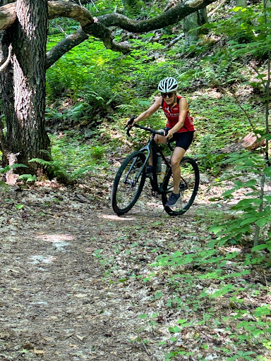 A very well designed and well marked challenging bike trail🚲 through the woods.