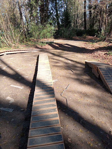 The coolest bike park I've been to or seen in a long time! Not a skate/bike park combo like most..the tracks were specifically made & paved for bikes. A beautifully made simple, yet complex paved track in the main area perfect for kids or adults riding any type of bike. & a very cool wooded course in the back with a simple paved trail & more complex dirt trails. Also with some short wooden tracks/planks of various difficulty that are a lot of fun. & to top it all off, end of dirt track area includes various difficulty ramps/jumps, mounds & serpentine side-wall tracks! — A clean family friendly park with jungle gym play area, bathroom/sink, 3 picnic tables & a large grassy area perfect for lounging =). No built in BBQ areas, covered seating/picnic areas or electrical outlets available. — Help keep the park clean, bring & wear a helmet, read the large course map & follow the color-coded signs along the tracks to stay on course...& most of all,...