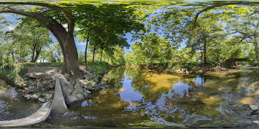 Great area no traffic on cul de sac, not congested with lots of people, one large swing set w2/baby bucket seats, another climbing wooden structure w/slides in another area, had a bounce house - not sure if its permanent or rented for a function, there is a hall for large gatherings, golf frisbee I think they have frisbees provided but not sure where you get them, I wish the swimming pool was operating that would be a great compliment to the park, enough picnic tables to pack a lunch and eat outdoors or spread a blanket, neat bridge over gurgling stream- little ones need supervision, restroom facilities and waste barrels to...