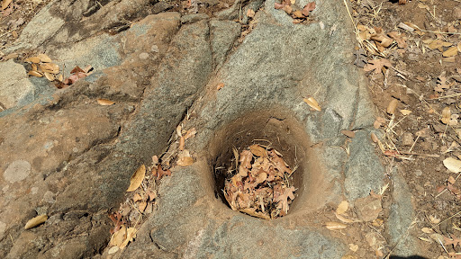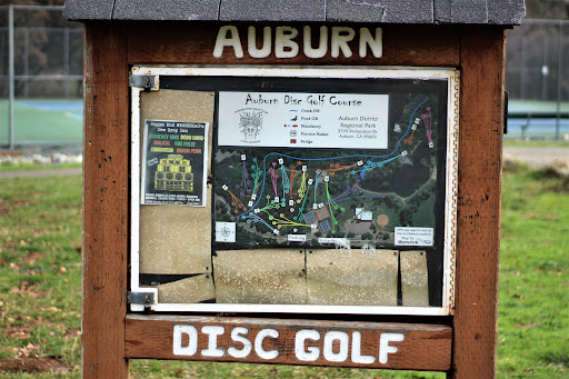 A nice disc course although it's a real shame that it plays directly on top of some of the last few Native American Grinding Stones left in the area. For those who don't realize or know, untold generations of California Native Americans harvested acorns from the many variety of Oak trees as a main food source. Once acorns were harvested they were pounded as fine as possible into flour, it was then leached. Acorns contain tannic acid which is very bitter and which is poisonous in large amounts. The leaching process removed the tannic acid from the acorn flour. The leaching was traditionally done by digging a shallow sand pit near a creek. The flour was then carefully spread in the bottom of the pit and water was continuously poured over it until it was sweet. It would take several hours of pouring to leach the flour.All the while singing and telling stories of their traditional and religious beliefs and experiences. From Grandmother on down to Mothers and Grandaughters. For so long in fact, that they hollowed out recesses into the extremely hard granite stone that have now come to be known as Grinding Stones. Now, left unprotected by the Regional Park and unnoticed by Disc Golf players who trample them everyday. I'm sure Native American descendents would consider this place sacred and find this disturbing. I wonder, would it be too difficult to realign the disc course around them? I believe basket #7 sits directly on top of the rock outcropping where the grinding holes are, so people are pretty much forced to walk all over them searching for their disc, albeit- unknowingly. Without even a sign or marker, it should at least be preserved and promoted as a historical site of some significance that others may enjoy today alongside the other attractions of this beautiful park. Who knows, if the Park Service were to clear away the thick overgrown blackberry bushes along the meandering creek, that more would be discovered and enjoyed instead of encouraging homeless dope friends to squat there. I could see something like other popular Grinding Stone parks in California where school kids come to learn about the People that lived here for thousands of years harvesting and hunting in harmony with their surrounding World. I contacted the Parks Service which could not seemed concerned at all nor interested in dialogue. Way to go Auburn Parks and Rec.