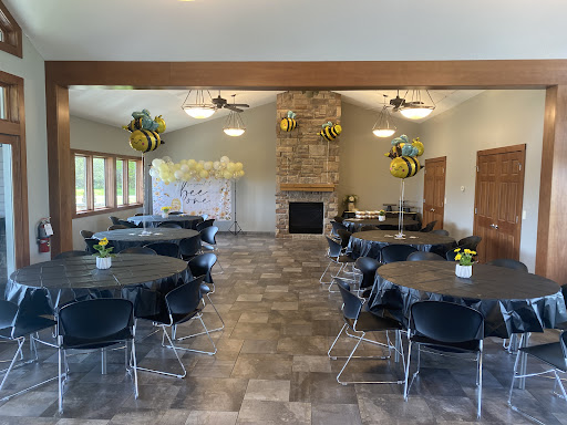 The Lodge: Gorgeous lodge perfect for your baby shower, grad party+ Reserve as far in advance as possible for a grad party, otherwise still reserve several months in advance. It is approx $175 to rent and you have access to it for the whole day. Full kitchen, long bar for food, trash cans, round and square tables and chairs provided. You just have to bring the decor, food, utensils and the party! Plenty of parking as well. Plenty of space for outdoor games with additional picnic tables under a covered patio. Bonuses include that there is a park on the grounds, a pretty pond to walk around, and they provide cleaning supplies. Highly recommend this as a space.