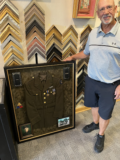 A special thank you also to Sunset Oaks Framing and Art Gallery who recently spent a significant amount of time and energy researching and putting together this shadow box for Jordan Maurer and his dad, Mike Maurer. The box contains the World War II uniform and medals belonging to Jordan’s grandfather and Mike’s father, Martin Maurer (January 19, 2020 – December 20, 2016). Martin joined the Army in 1940, and quickly moved through the ranks to the Army Air Corps where he was promoted to officer in the 15th Air Force 374th Bomb Squadron stationed in Europe. He bravely served his country leading thirty-five aerial combat missions earning him the Distinguished Flying Cross, the Air Medal with four oak leaf clusters and three battle participation stars. Phil at Sunset Oaks did a significant amount of research and made a number of calls to the Auburn Veterans Memorial Hall to determine the appropriate location for the medals and patches on the uniform. A very special piece that will be cherished by the Maurer family...