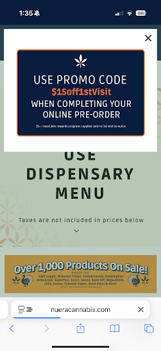 Ā Ā Ā Read moreIāve been going to this location for a while and the last transaction i believe they forgot to give me my medical discount and then I was mistaken because I didnāt realize I was getting charged extra fees so I brought that up but they explained to me that the balance was correct. Just a little misunderstanding not a big deal at all. One of the ladies behind the desk tells the worker who was taking my order to count her bills for my transaction⦠I was using a debit card. It was just really rude that she was trying to make it out like I was trying to pull over something on them. Besides this issue they offer $100 for your first visit or atleast this is what the website says. When you get to the store they act like they have no idea about the deal even though I have a screen shot and have shown them before. I had one worker explain to me that it is only for medical patients at medical dispensaries but it doesnāt say that on the website and I feel itās super misleading. I wanted to go to nuEra the first time because I saw they had that deal. It was a very big let down to say the least, bordering on feeling like false advertisement. Besides these issues I brought up the workers are super friendly and do a great job with helping you. Ultimately I just wish they made good on their offer that they still have on their website to this day. At most other dispensaries they would have just took the loss to make it their customer happy, especially in a case like this when there is...