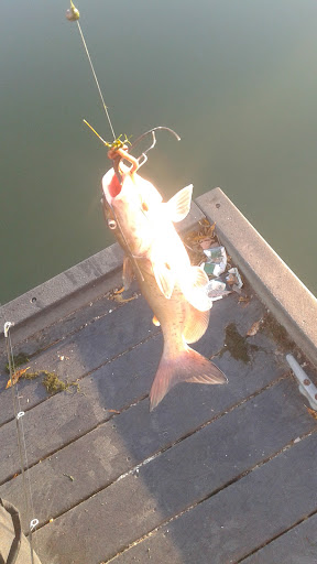 It's a very active community park, people playing soccer games, having picnics, etc. Nice place. People seemed nice. Lots of walkers on the path. Not to crowded. Big pier to fish on. If you don't want to bushwack and get in the weeds then be prepared to be the guy who breaks angler code and fishes way to close to someone else...