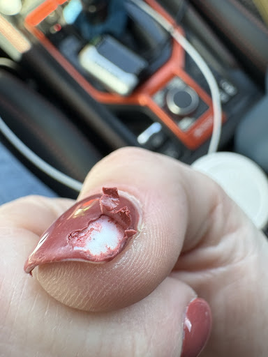 Read moreOkay SO... I am Beyond Disappointed with my nails. First off I asked for Gel and the lady continued using acrylic on my nails. I wanted a FullSet w Red French Tips. I had been growing my Natural nails out for about 3 months, my natural nails were very long but she said she had to cut them all off in order to proceed With longer fake nails. I allowed her to cut them but I was already a bit sad about that. She DID NOT push my cuticles back or cut them at all, she actually ended up Splitting 2 cuticles when they were perfect before. It’s only been a week and it looks like I got this set done weeks ago. But ON TOP OF EVERYTHING I Kid you Not The Very Next HOUR the nail on my middle finger Broke off. The lady was nice enough to fix it the next day though. But there was barley any friction when it broke, the hold should’ve been its strongest at that point. A week later and the other middle finger didn’t break off but it popped off out of nowhere like a press on. I was literally just walking. I paid this Lady $50 for this and they couldn’t even last a week. I’m so upset. I’m giving 2 stars cause my moms nails looked great but then again the other lady...