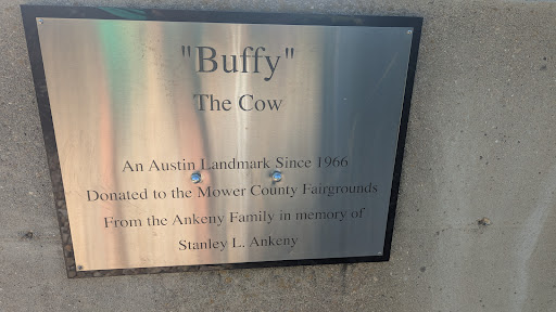 Everyone should know that Buffy did not always reside at the fairgrounds. Originally she stood atop the Ankeny Dairy Foods building. Before there was Kwik Trip there were Ankeny Mini Marts in every neighborhood in Austin. They provided access to staple foods for many that did not have access to convenient transportation and those that enjoyed just stopping in for a quick gallon of milk or loaf of bread. Her placement on the roof of the Ankeny Dairy Foods building made her an everyday sight to all of the Ellis Junior High School students as they were transported to and from school each day. Although she is no longer a neighborhood landmark it is gratifying that in her retirement she still serves as a reminder of times past in the...