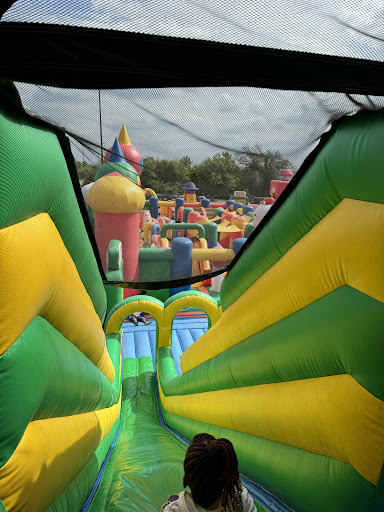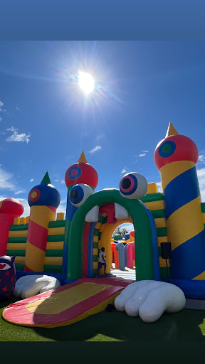 Took two kids here and they each had a blast, ages 4 and 2 years old. The space is HUGE and there are so many spots to jump and climb and explore, that even with 30-40 families there, it never felt crowded. I loved that they had two separate shady areas to sit, and some of the inflatables are shaded as well. However, they only had afternoon time slots available, and even in the shade and "only" being 75' outside, the plastic/material that the house is made out of gets SO HOT! I know people will complain about it being wet and socks getting soggy, but I kinda wish they would hose it down and just make it a water slide inflatable house. Also, the sno cones are a nice touch but the BEES are unreal! They're doing their best with bug traps thoughtfully placed throughout, but there were still so many bees. Still a great and...