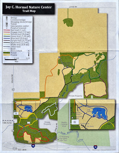 One of the standout features of the Hormel Nature Center is its well-maintained trail system, which includes both easy and more challenging paths, making it accessible to hikers of all skill levels. Whether you’re walking along the serene shore of Bean Lake or exploring the forested trails, the park provides plenty of opportunities to connect with nature. The center also offers a variety of educational programs for all ages, focusing on local wildlife, conservation, and the environment, making it a great spot for families and school groups.