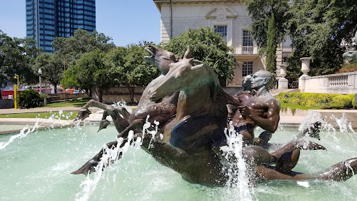 The sculpture affiliated with this fountain is absolutely beautiful. The fountain itself is of great significance to The University of Texas at Austin, and students will often be found taking photographs at graduation in the pools of the fountain. :-) I absolutely recommend checking Littlefield out when you are...