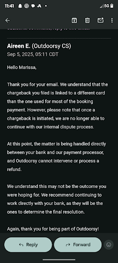 We would never even think of trusting Outdoorsy again-it's really just a platform, taking a cut, and cheaply outsourcing their customer service.
