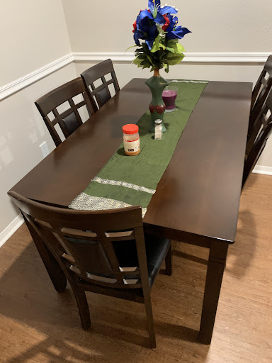 A week or so later, I decided that I wanted the dining set and couch, but didn't want to deal with the hassle of selling them on Craigslist or something. So, when I went pay the remaining balance on the couch and purchase the dining set, Robert said the delivery men would haul off the old sofa and dining set (for free). Sweet!