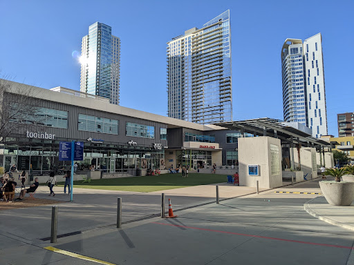 I love this area, it's a beautiful place with beautiful ppl who also have well groomed furry family friends, this place has upscale restaurants, shops and boutiques, even a market , right dab in the middle is the dog park and you can always see or find ppl lounging on chairs upon the turf alongside there dogs,or doing all kinds of things, there's a constant flow of ppl here but it's never crowded,there's also a small water park,(spouts spraying water) so the kids can cool off,I especially enjoy when the sun sets, someone turns on the neon lights and it gets active, nothing to worry about there is always a 24 hour unarmed security guard on duty, special shout out to my new friend officer lee, to interject if anything were to happen, there are also benches and tables on the outer area of the dog park where you can share a quiet conversation or take the night in, the atmosphere here is perfect,very good place to make long lasting memories,embark on a new romance or enlighten the one you have, not to worry you hopeless r's or singles anything can happen here, I'm telling you the atmosphere is live, don't just take in the atmosphere though, check out the architecture here ,it's amazing as well,it is wheelchair accessible and the water fountain works, have a wonderful time, also if you are a car enthusiast there is no shortage of beautiful cars here as...