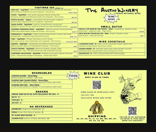 The staff is friendly and knowledgeable, happy to guide you through their selection of locally made Texas wines. They offer a mix of reds, whites, and rosés, along with a tasting option. I personally tried the Spaghetti Blend - a dry, acidic red that felt perfect for a hot day. The white wine was also impressive, and generally, Texas whites tend to stand out more than the reds.