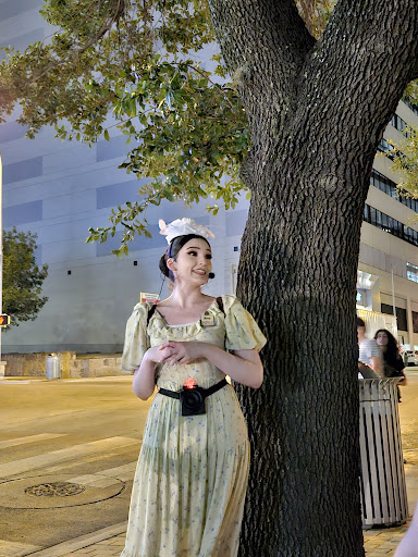 Our informed and hardy guide, Stephanie (wearing full period attire from head to ankles), managed to keep our large group together and engaged. We made our way safely around several (long) city blocks as she wove her love of Austin history into tales of the living dead. Stephanie spoke clearly into her portable loudspeaker, showed us digital photos of ghostly people, and kindly answered our questions like a pro.