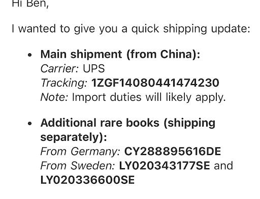 If there’s any decency left, I trust you will either promptly return my books—redirecting them to the institution I named in my last email—or, if you intend to keep them, issue a public statement affirming that you will retain them in perpetuity and under proper rare-book conservation standards. This is something we have already agreed upon, and you know it.