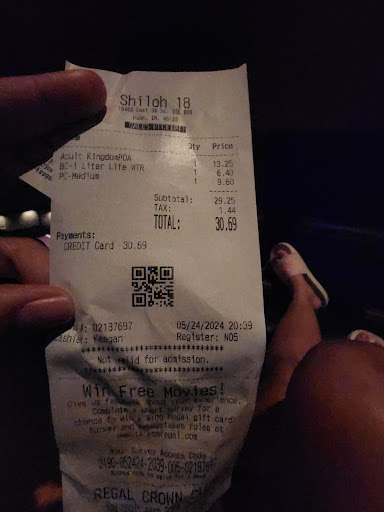 In summary, I mostly focused on how the theater rooms are now so comfortable that it even surprised me at first. However, you should also visit Regal Shiloh due to their establishment's ongoing effort and persistence in keeping moviegoers coming back, because of their friendly and respectful staff, and to keep movies special!