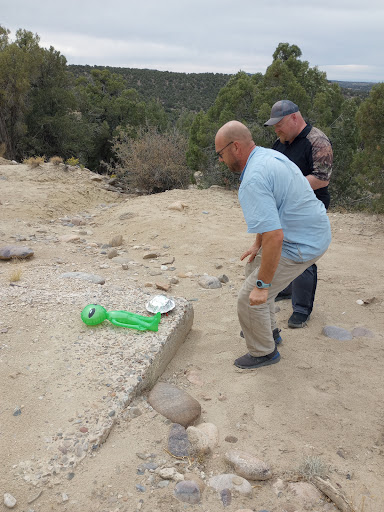 I find a comical how people still talk about top of the Mesa, plaque missing, a freaking alien head made out of River rocks, bike trails, a 10 inch concrete pad. Will none of that stuff is anywhere near where the alien vessel crash if you go all the way to the end of heart canyon and heading north on Arkansas loop the switchback is where you park and you head West and you'll find the real concrete pad and the real spot where the spaceship crashed and the real road that the army built to get the spaceship out of there and does anyone know why that and it's not 10 in it's way bigger than that and it was poured why because the crane would sink into the ground as it tried to lift the spaceship which was over 100 ft across so you look around up there on top of your little Mesa where you put your alien head and stuff and you see the access road up there no not at all so sandstone or whatever but you can see the access road on Google maps and it's more prevalent in person. I've got a pretty good marker on in Google maps and Google even let me edit it so all you posters up there on the Mesa with your plaques are fooling people thinking that's where it actually crash so if you want to real experience you need to get off the top of that if you want to call it that head over by the switch back up to Arkansas loop and see if you can find the real concrete pad that they had to make for the crane leg. Yeah well yeah you can see if you can pick up the access road which heads out to the east back to the Arkansas Loop road