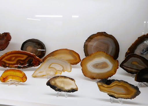 The rooms include the Billy Wyatt Cabochon Collection featuring agates, jaspers, and cabochons.