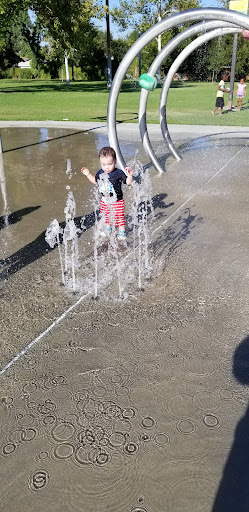 We love this park. The splash pad is so much fun and my twins love the swings. There are two playgrounds, one for older and one for younger kids, tennis courts, chess tables, basketball court (pending hoop placement), picnic tables, grills, an amphitheater, and two large fields. There is a public bathroom which is surprisingly clean but very run down with no towels or soap.