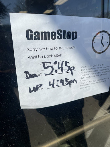 My family and I came here to purchase some roblox cards. We arrived at 3:30pm, and at first the note said they’re closed and they will open at 4:45pm. We had no problem waiting till 4:45pm because we were getting our tire fixed. The tire shop is right by Gamestop. 4:45pm came and we walked to gamestop, and saw that somebody had rewritten on the paper in black marker and said that they left at 4:45pm and will be back to open at 5:45pm. I’m looking at old reviews and they’re saying that the owner is sitting in the car....