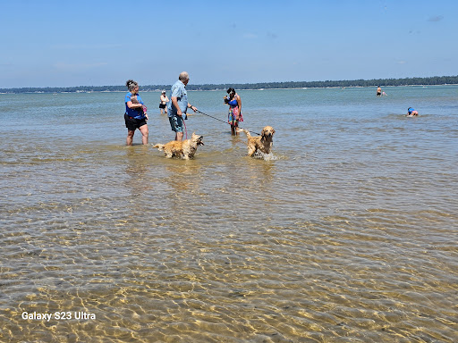 We had an okay time. We came specifically for the dog beach and dog friendly park but didn't know until we arrived that dogs are really only allowed in one little beach area. It also costs $11 for a day pass. If you're going for the dog friendly park and beach I'd say save your money and go to the free tawas city parks that allow dogs and have nicer beaches and amenities. The restrooms are on the main beach which doesn't allow dogs. There is not any picnic tables or shady areas, there was 1 bench. The dogs liked the water and it is very shallow so they can play and splash but keep them leashed, it's a $250 fine if they are caught off leash, however we saw several letting their dogs run...