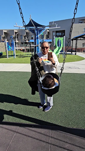 My toddler loves to swing, and there are both regular swings and baby swings. Fortunately they are also in the best-shaded part of the park, so it’s comfortable to be there for awhile. The other play parts of the park can be pretty sun-baked, so skin...