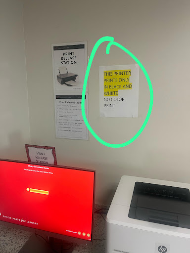 Because of this, I had to pay twice, reprint my work somewhere else, and now I’m stuck with a pile of unnecessary paper. Before I left, I even put up my own sign saying “Printer prints in black & white only” so others don’t have the same bad experience.